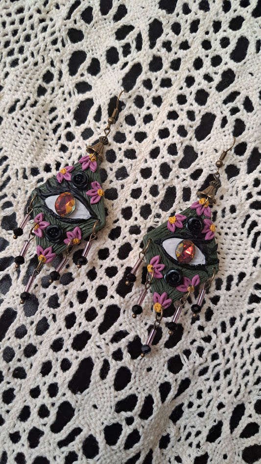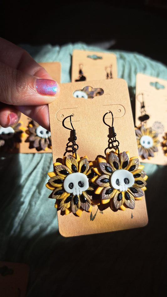 Handmade Polymer Clay "Skull Flowers" Dangle Earrings