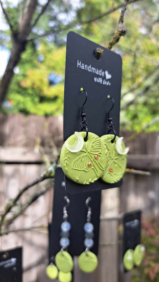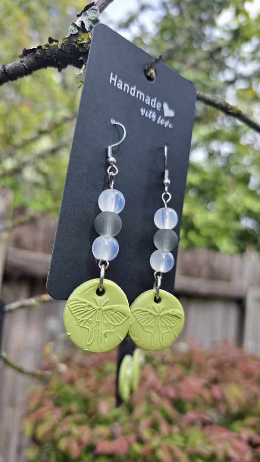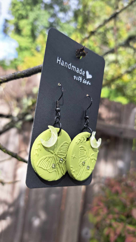 Polymer Clay Round "Luna Moth" Dangle Earrings