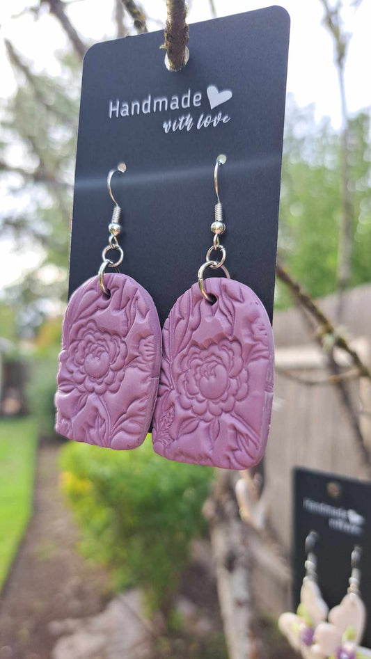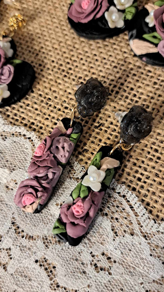 Handmade Oblong Flower Dangles Polymer Clay Earrings (A)
