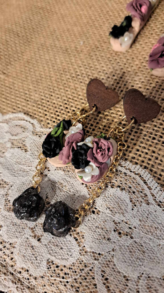 "Mossy Heart" Polymer Clay Dangle Earrings (I)