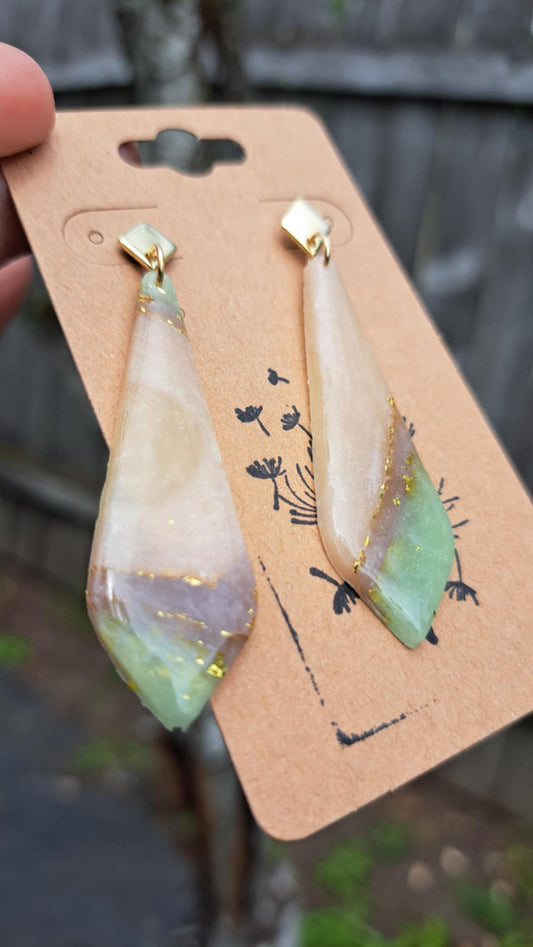Agate Effect Polymer Clay Dangle Earrings (A)