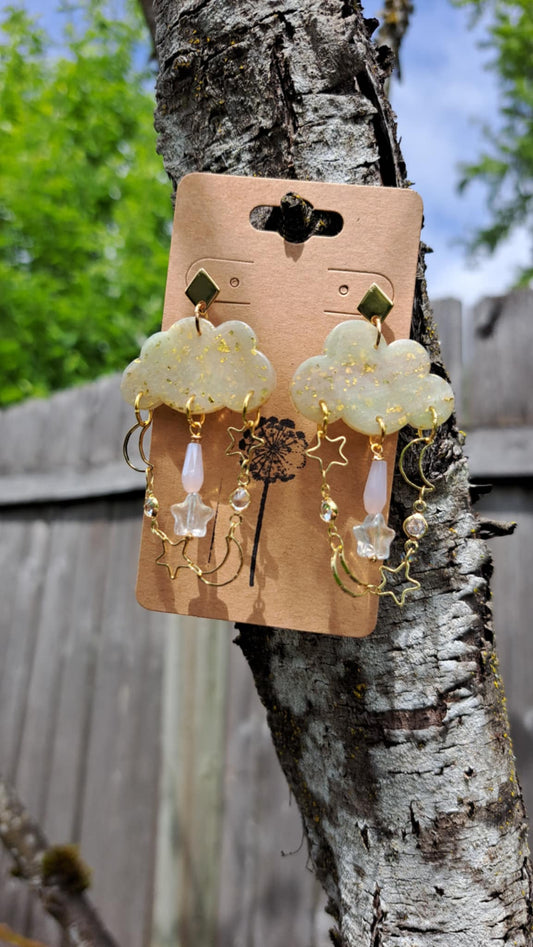 Sparkling Cloud Polymer Clay Dangle Earrings (F)