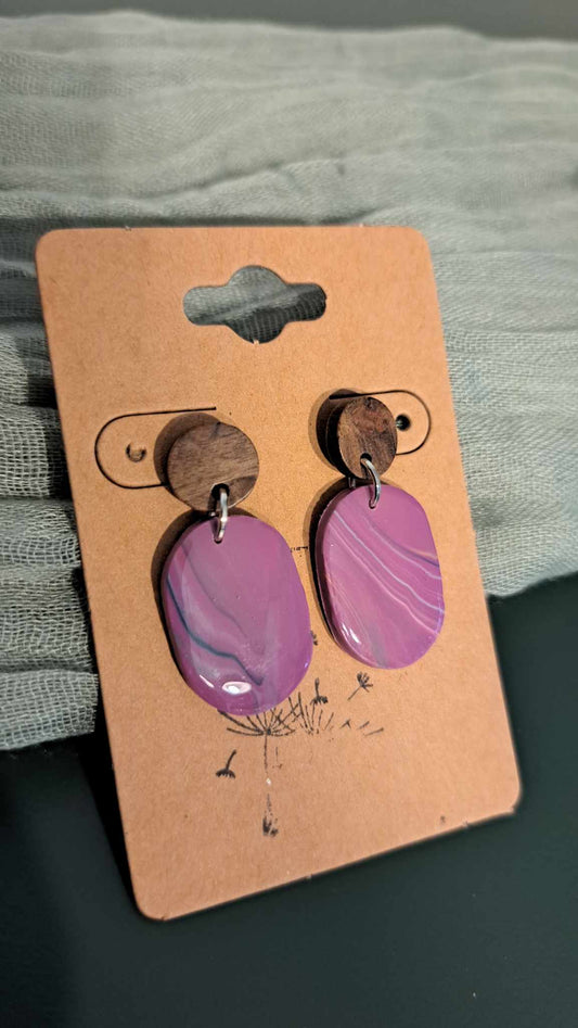 Handmade Small Oblong Banding Dangles Polymer Clay Earrings (I)