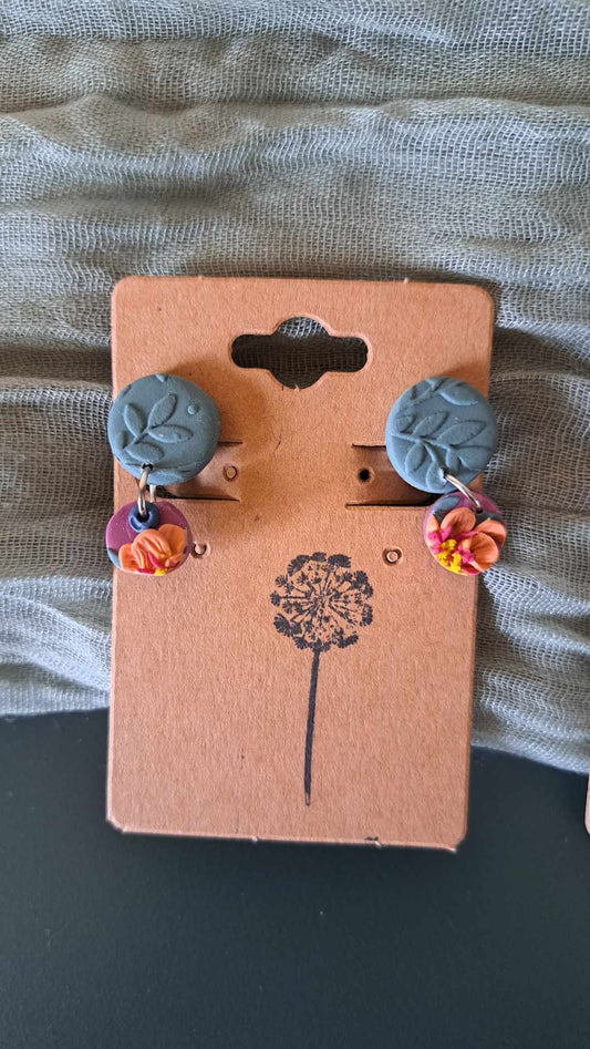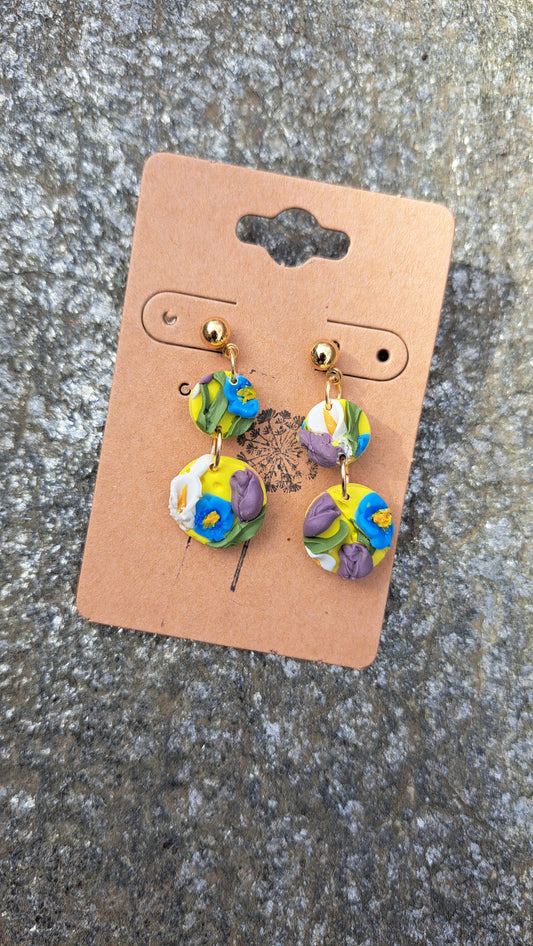 Handmade Circle Flower Dangles Polymer Clay Earrings (E)