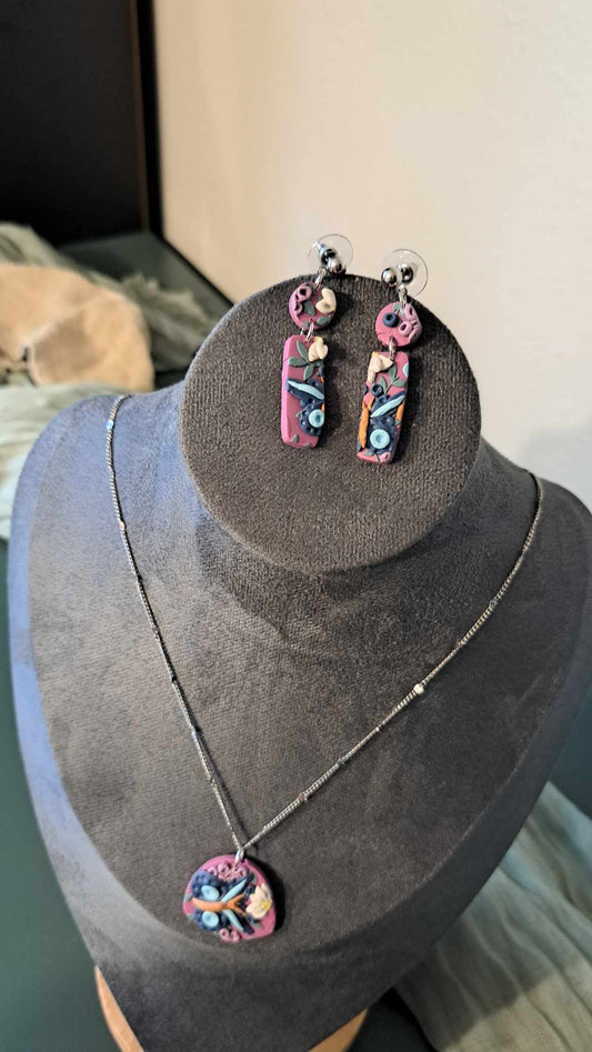 Handmade Spring Butterfly Polymer Clay Earring/Necklace Set