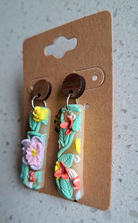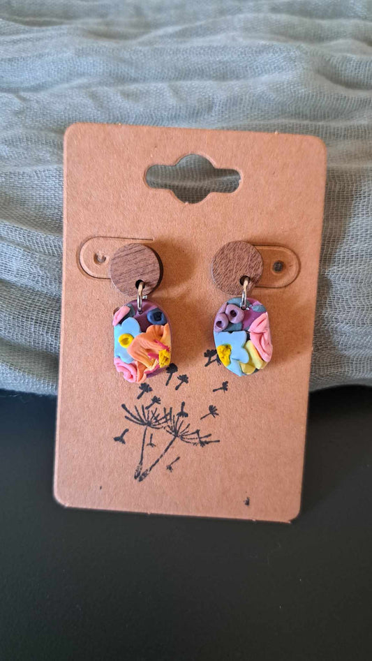 Handmade Oblong Pastel Flower Dangles Polymer Clay Earrings (B)