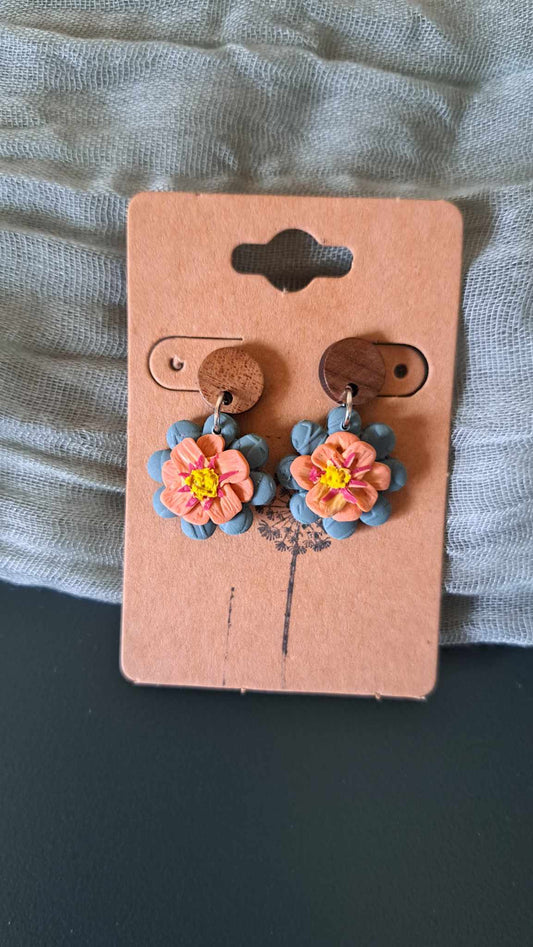 Handmade Dahlia Flower Dangle Polymer Clay Earrings (D)