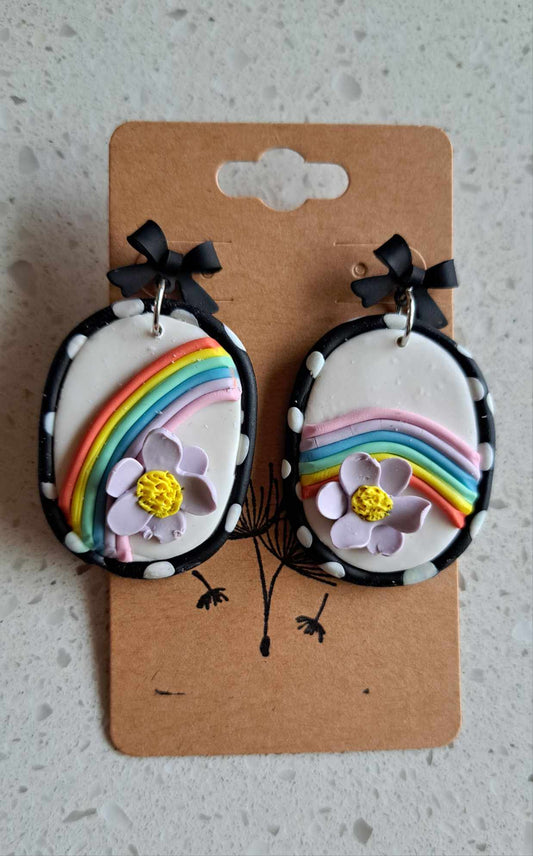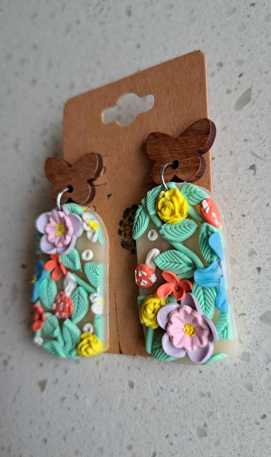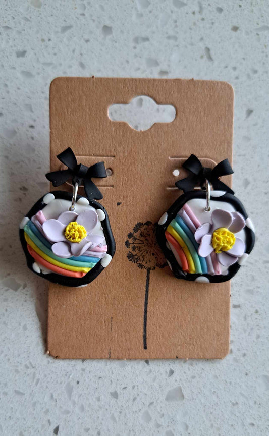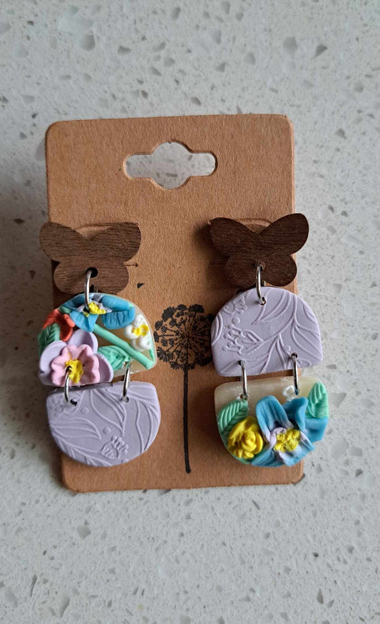 Handmade Arched Pastel Flower Dangles Polymer Clay Earrings (A)