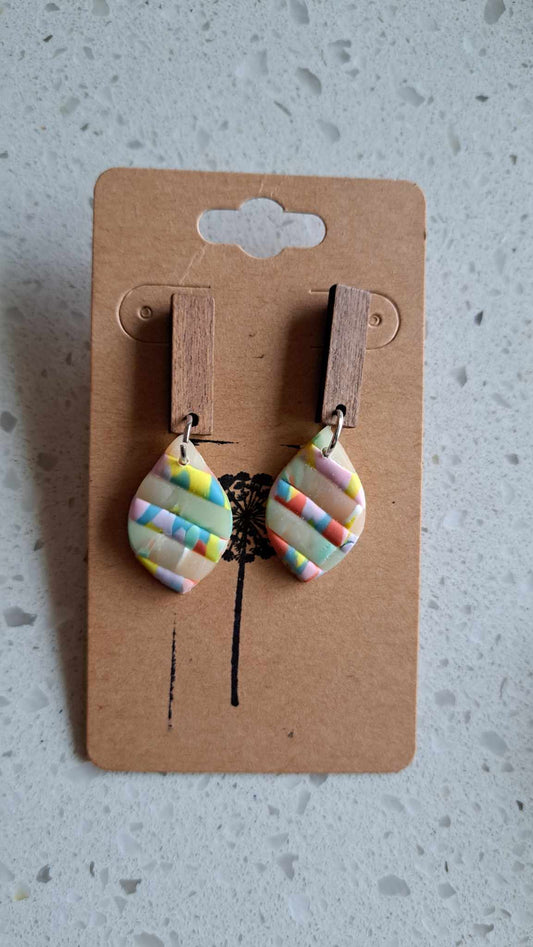 Handmade Small Pastel Paint Dangles Polymer Clay Earrings (B)