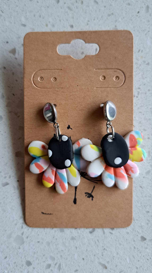 Handmade Small Pastel Flower Dangles Polymer Clay Earrings (E)