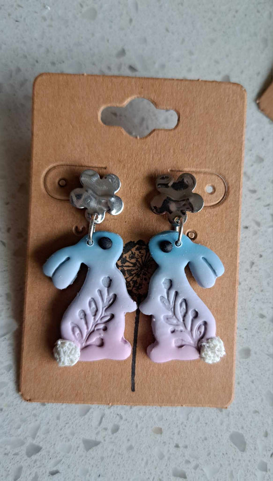 Handmade Ombre Bunnies Dangles Polymer Clay Earrings (A)