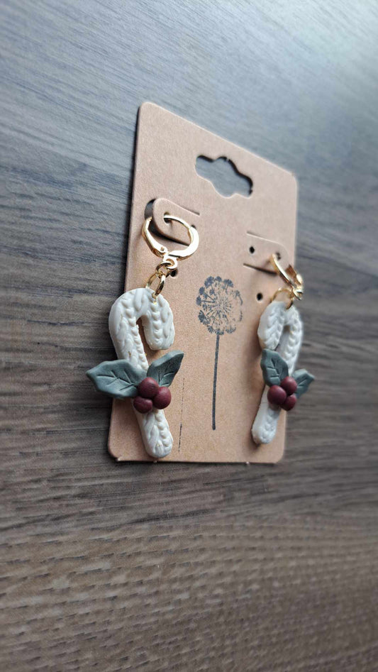 Sweater Candy Cane Polymer Clay Dangle Earrings (F)