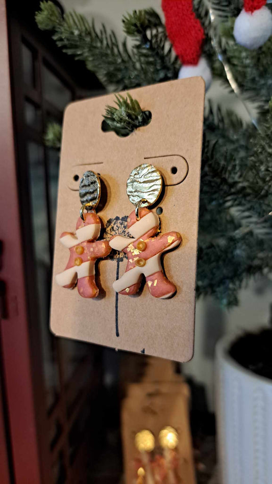 Striped Gingerbread People Polymer Clay Dangle Earrings (D10)