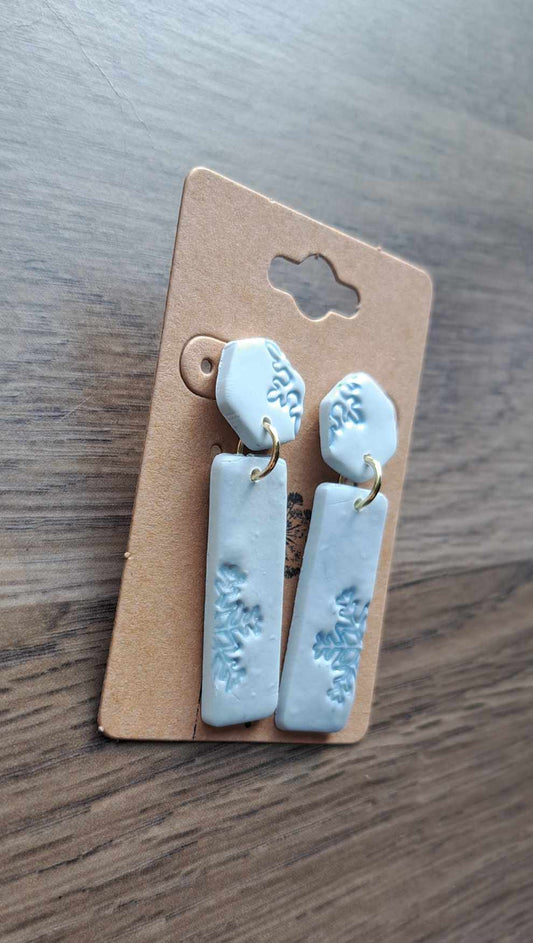 Blizzard Hex/Rec Polymer Clay Dangle Earrings (Z)