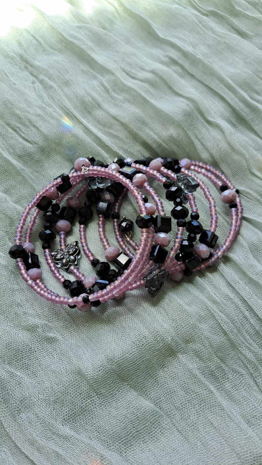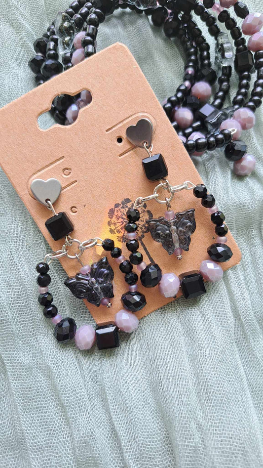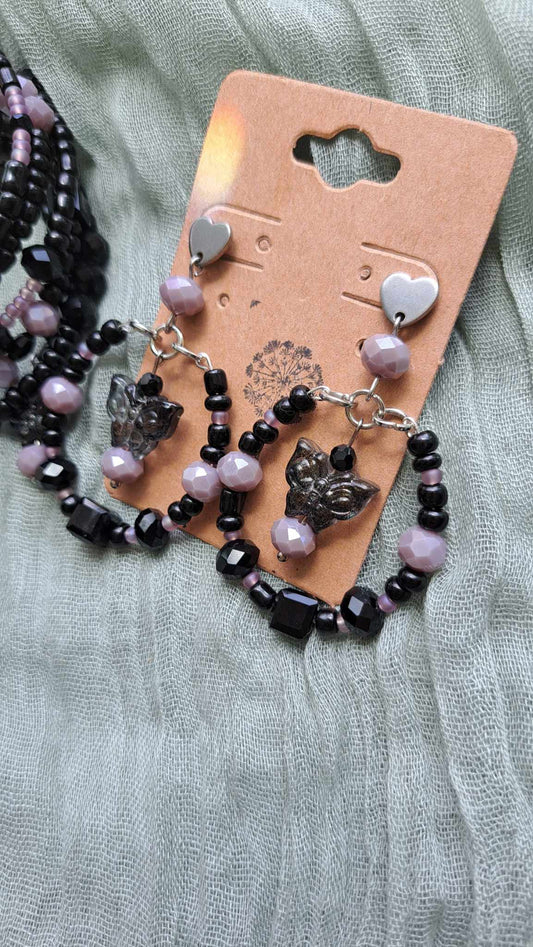 Handcrafted Lilac/Black Butterfly Bracelet Set
