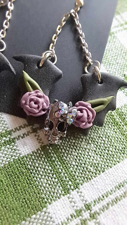 Polymer Clay *Chandelier Bat With SKull* Dangling Earrings