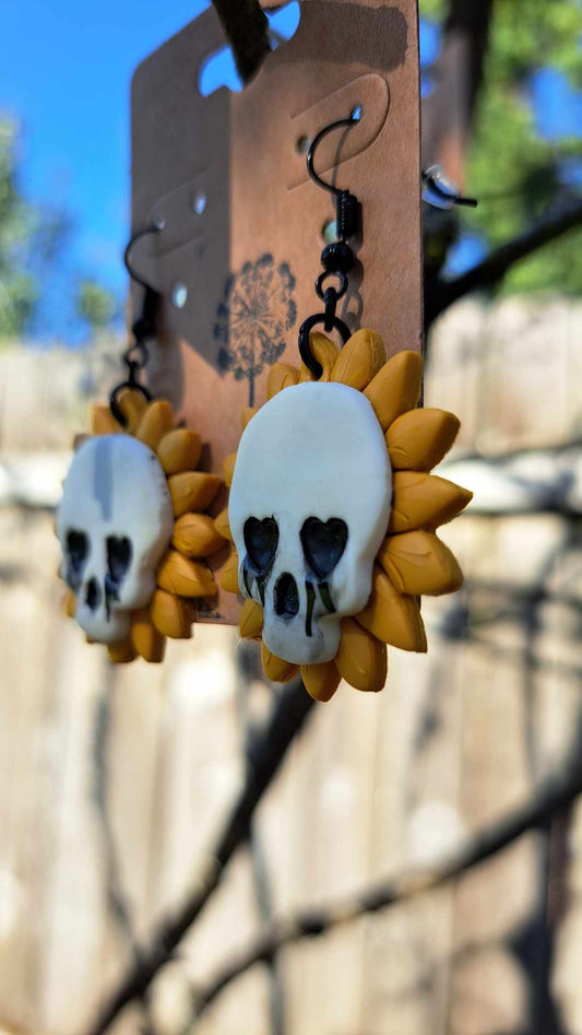 Polymer Clay Sunflower Crying Skull Dangle Earrings