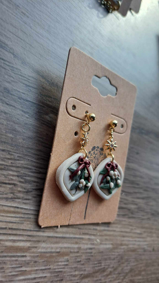 Mistletoe Polymer Clay Dangle Earrings (K/L)