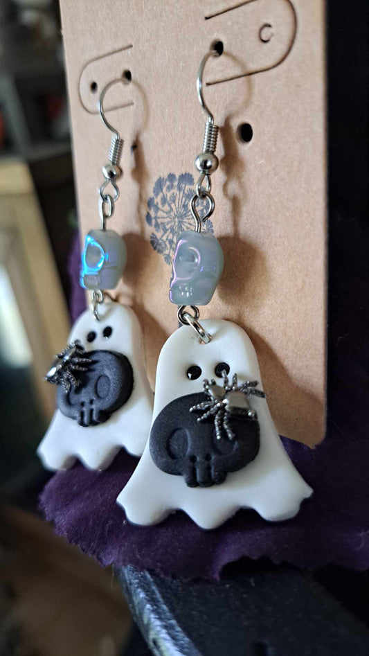 Polymer Clay "Ghost With Skull" Dangle Earrings