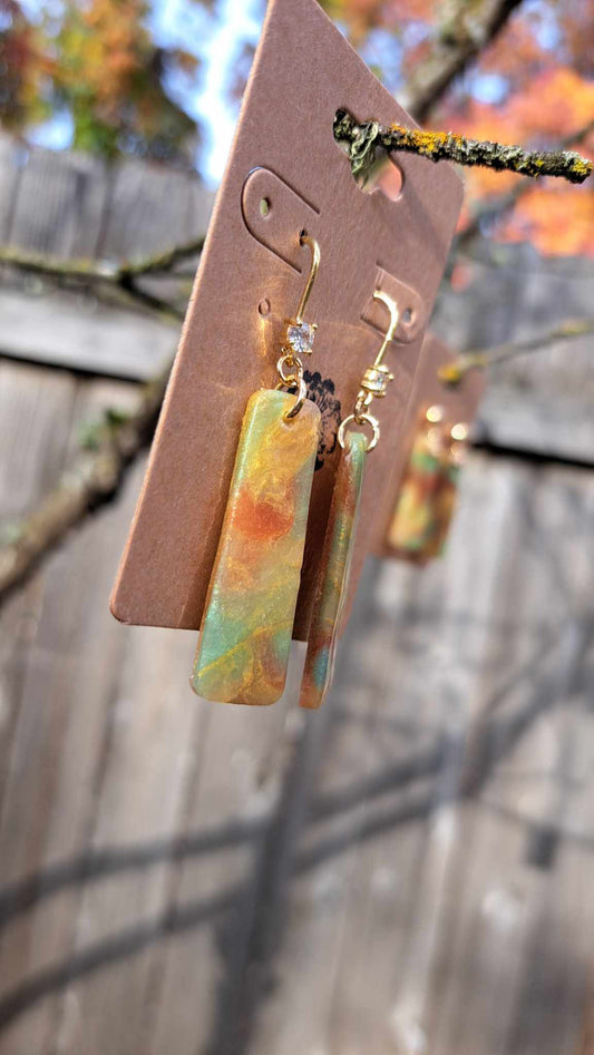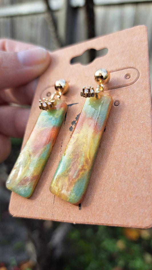 Marble Rectangle Polymer Clay Dangle Earrings (C)