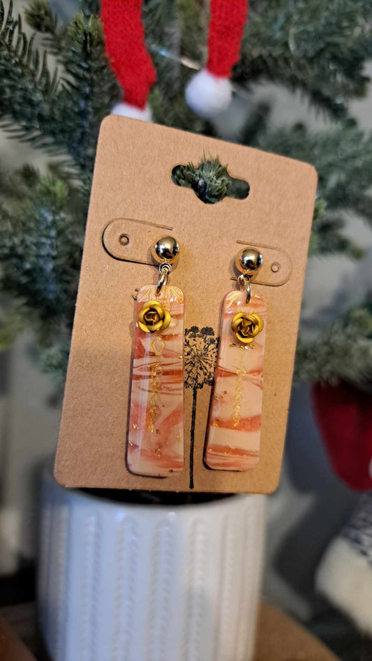 "Double Hearted Rose" Polymer Clay Dangle Earrings (D)