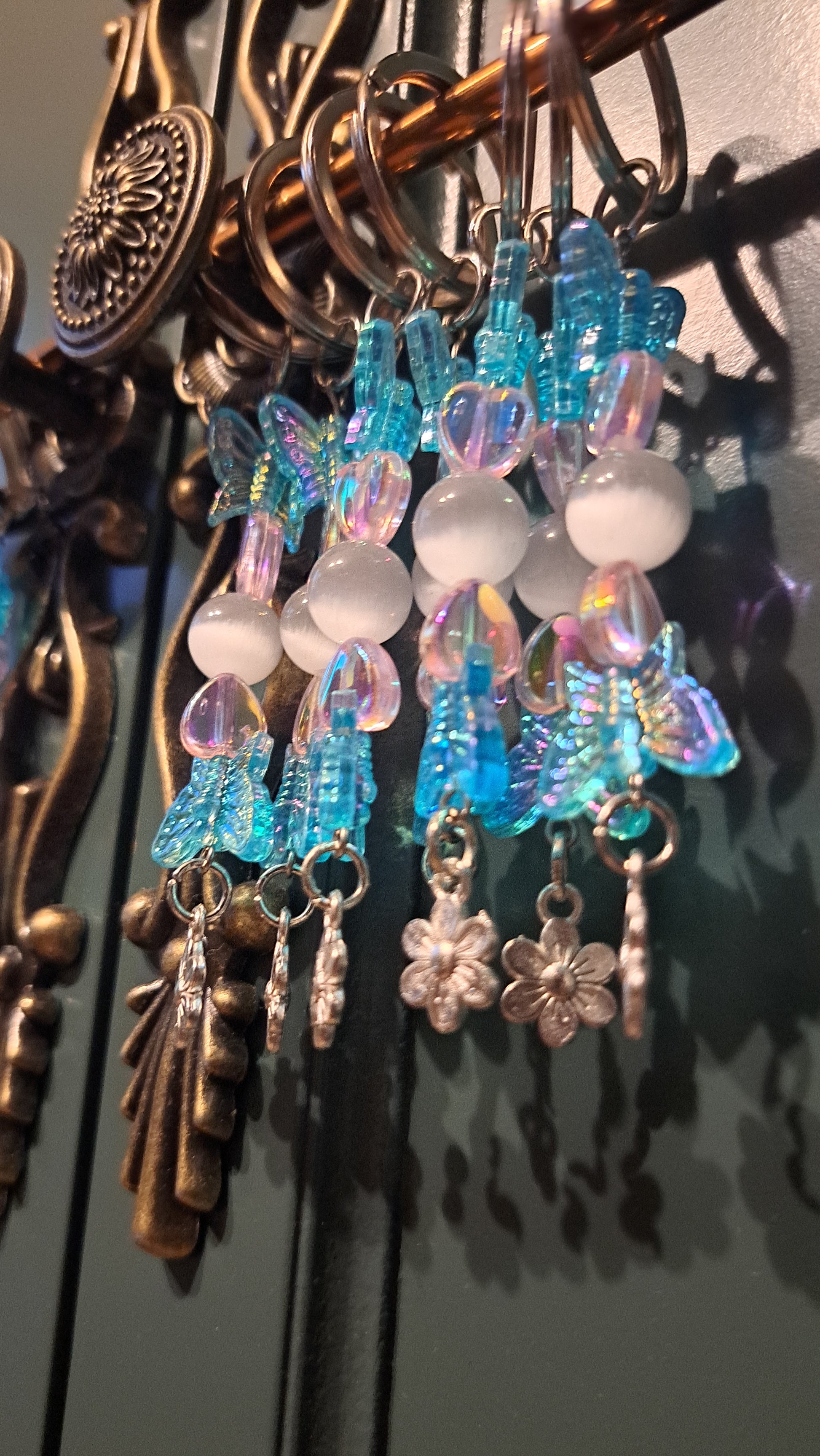 - Powder Blue Butterfly, Baby Pink Heart, White Cat Eye Beads