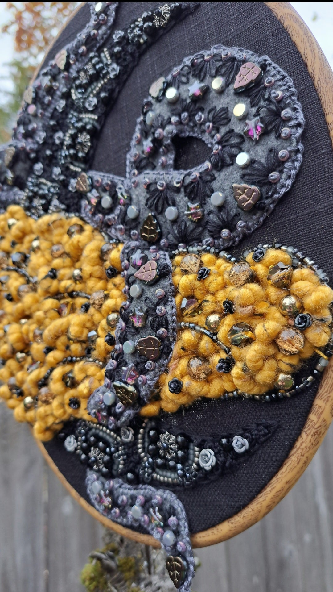 **Please not that this piece can be a bit on the heavier side so please carefully mount it to your wall. (Wall mounts not included.) If it falls it can be damaged due to the piece being primarily made of glass beads.**