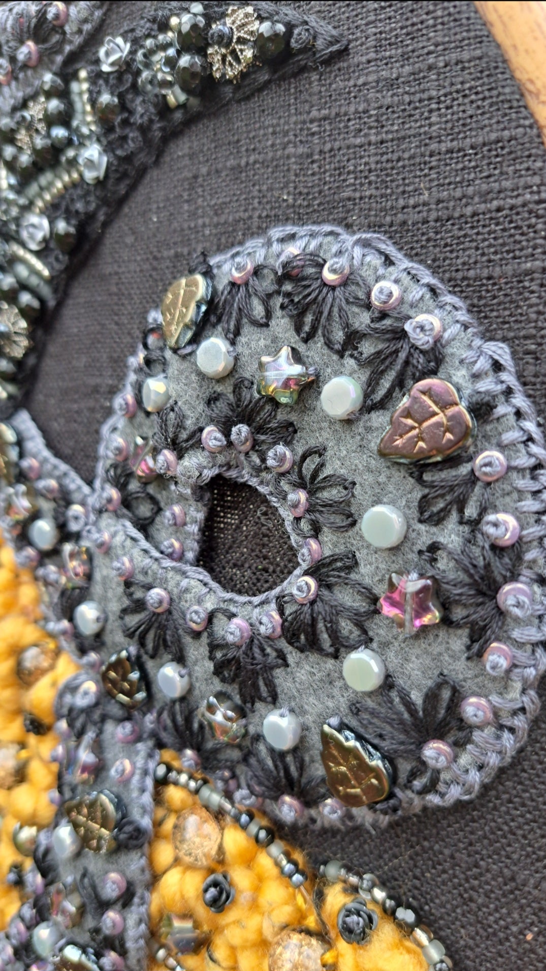**This stunning piece took me a total of 34 hours, even though I never think it will take long. I hand embroidered it with countless beautiful beads, creating a cloud that reminds me of autumn blowing in silently at night.**